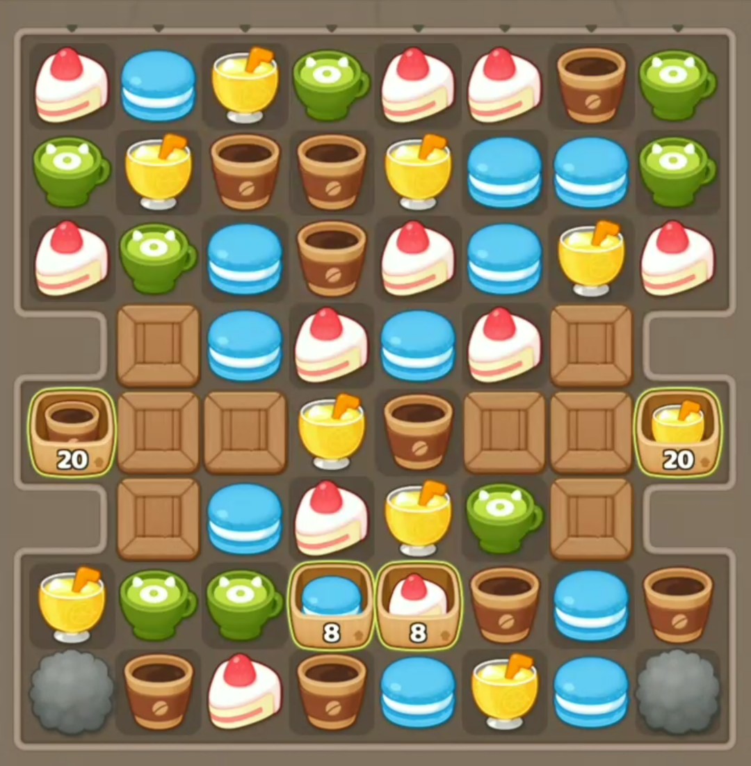 「カウントBOX」「木箱」「お邪魔ブロック」が組み合わさった難易度の高いステージになっています。